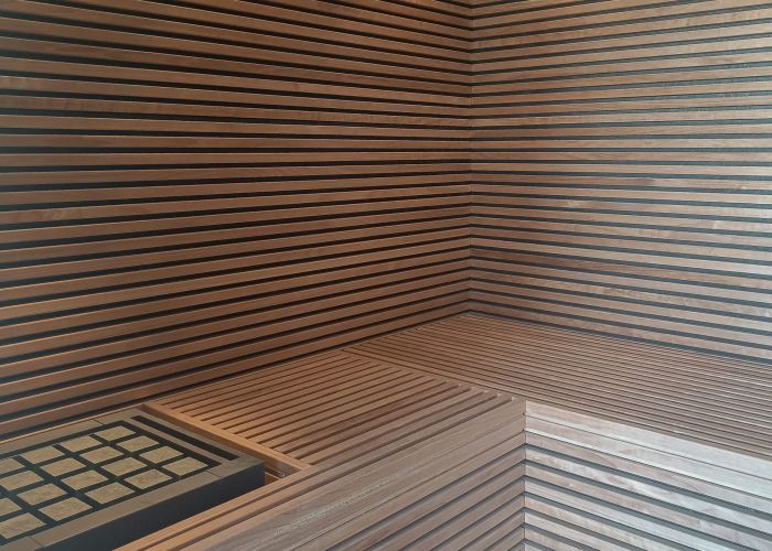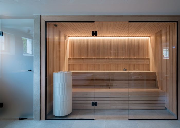 Hos en privat kunde har vi været med til at bygge en wellnessoase. Her har vi designet og monteret en finsk sauna. Resultatet er en velafbalanceret saunaløsning, der harmonerer i wellnessoasen.