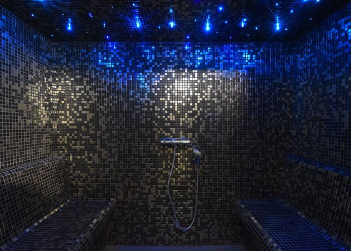 Besætningen om bord på Lunar Bow kan nu nyde et afslappende dampbad i en eksotisk dampkabine. Dampbadet er beklædt med blandede mørke og skinnende mosaikker på både vægge, loft og bænke.